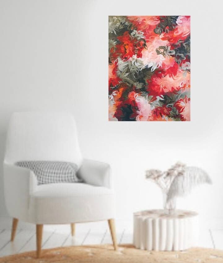 I love this intuitive piece it's bright and lively with lots of movement. This will definitely brighten a corner of your home.